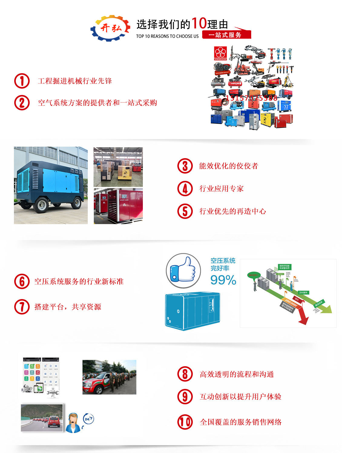 ? ? ? ? 我公司始終堅持紅五環經營戰略,堅持中高端品牌空壓機、鉆機的經營發展思路 ,專業于品牌空壓機、鉆機的銷售與維修服務,并提供空壓機、鉆機維修及零備件供應(鉆桿,鉆頭,沖擊器等鉆機配件;空氣濾芯、機油濾芯、油氣分離器、專用潤滑油、冷卻液……